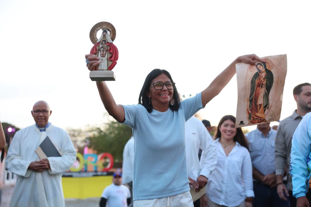 Delcy Rodríguez rompe con el chavismo simbólico y reemplaza a Chávez y Maduro por símbolos religiosos