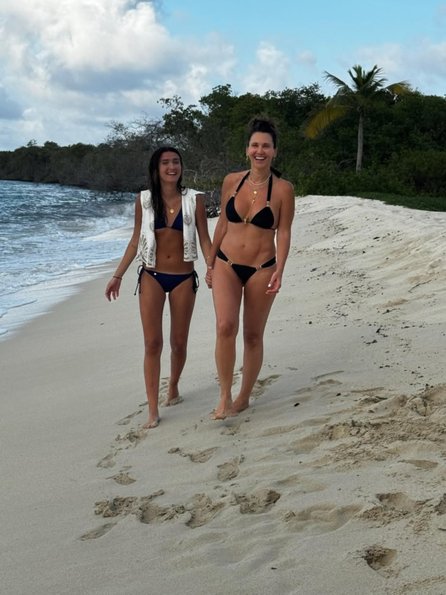 Con un traje de baño negro con detalles dorados, Canabal mostró su figura tras sus ejercicios de pilates. “Disfrutando por poquitos días a mi familia y con amigos que son familia. En el país más bello del mundo Venezuela”, escribió.