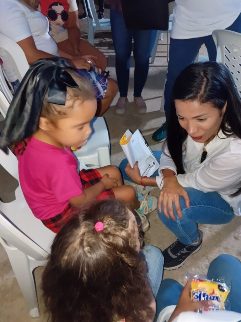 Nelly López comparte con niños marabinos mientras entrega libros para colorear que resaltan los íconos de la ciudad. “Este proyecto es de todos, y comienza con ellos”, afirmó.