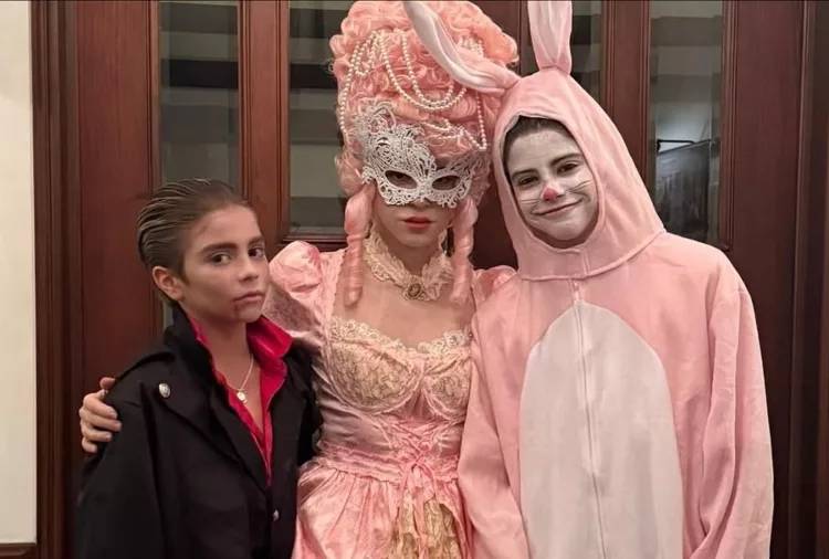 Con un vestido rococó en tonos rosa pastel, peluca voluminosa y una máscara blanca decorada, la cantante recorrió las calles de la capital colombiana sin ser reconocida inmediatamente por la multitud. En su cuenta de Instagram, compartió imágenes de la salida nocturna con el mensaje: “Tricky tricky Halloween en Bogotá!”, mostrando también a Milan disfrazado de conejo rosado y a Sasha como pequeño vampiro.